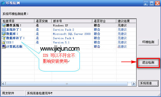 環(huán)境檢測界面如下圖 IIS可以不符合不影響安裝使用