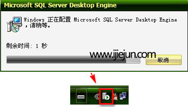 雙擊MSDE2000處,出現(xiàn)下面這個對話框,這就表示在安裝數(shù)據(jù)庫了。
