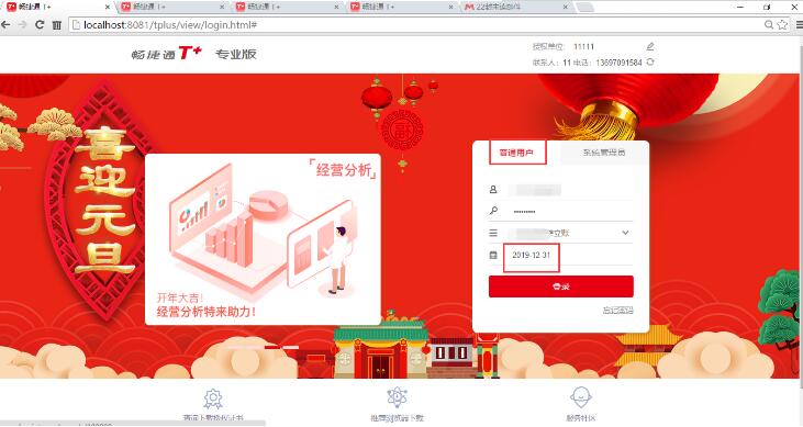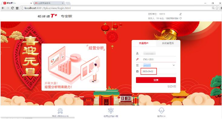 1、以2019年的日期,用賬套主管的身份登入T+軟件;