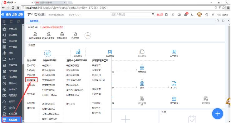 2、點(diǎn)“系統(tǒng)管理”-“基本設(shè)置”-“會計(jì)期間”;