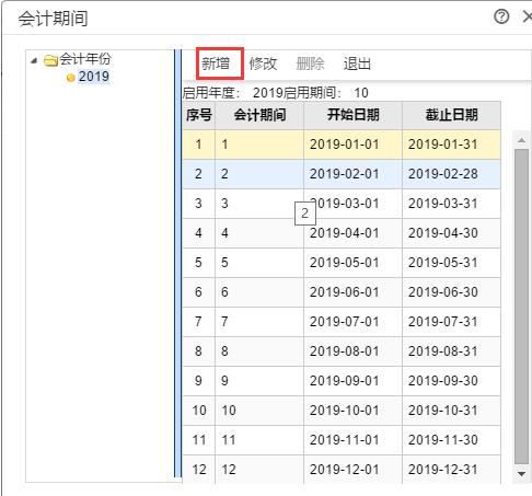 3、在會計(jì)期間的界面上,點(diǎn)“新增”按鈕;