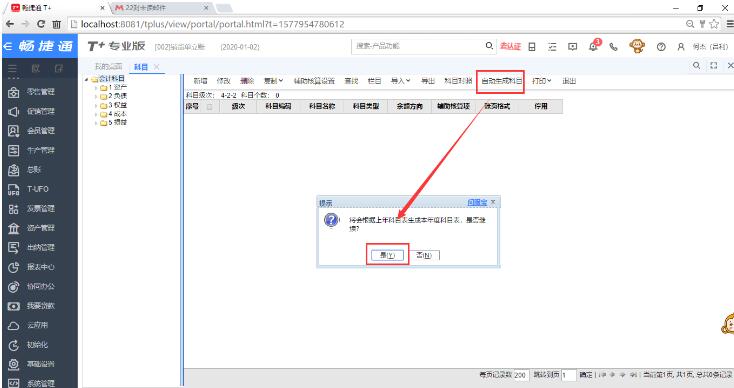 6、如果客戶那有財(cái)務(wù)賬,需要做2020年的憑證,則還需要點(diǎn)“基礎(chǔ)設(shè)置”-“科目”-“自動生成科目”,則會把上年度的科目帶到本年度;