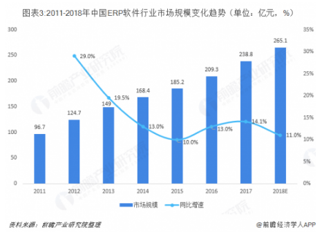 中國市場企業(yè)數(shù)量眾多,近年來在中國經濟轉型、中國制造2025等趨勢的推動下,企業(yè)服務市場,尤其是ERP軟件行業(yè)發(fā)展持續(xù)向好,2010-2018年間市場規(guī)模復合增速達15.5%,遠高于全球增速2.9%。其中云ERP在總的ERP市場份額中占比逐年擴大。如果此時你對erp軟件還不太了解,可以查閱《erp系統(tǒng)入門》資料。