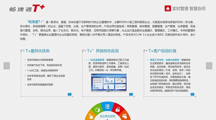 產(chǎn)品應用功能包括:采購管理、銷售管理、庫存管理、往來管理、現(xiàn)金銀行、總賬、T-UFO報表;主要應用于小型商貿(mào)企業(yè)、工業(yè)企業(yè)與工貿(mào)企業(yè)財務(wù)業(yè)務(wù)一體化管理。
