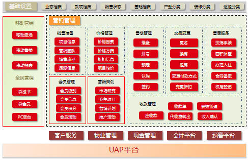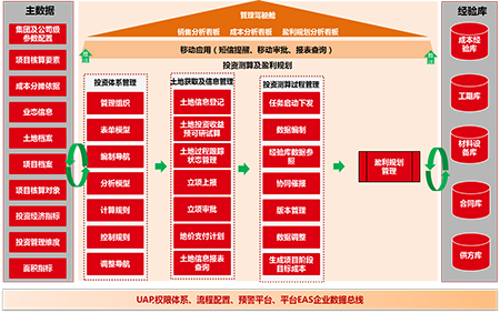 用友地產(chǎn)行業(yè)解決方案用友地產(chǎn)解決方案是用友專為地產(chǎn)企業(yè)開發(fā)建設(shè)和商業(yè)經(jīng)營提供的行業(yè)性全面信息化解決方案。 用友地產(chǎn)行業(yè)解決方案包括項(xiàng)目投資測算管理、項(xiàng)目盈利規(guī)劃管理項(xiàng)目成本管理、項(xiàng)目進(jìn)度管理、項(xiàng)目資金計(jì)劃管理、招標(biāo)采購管理營銷管理、客服管理、基礎(chǔ)物業(yè)管理、商業(yè)運(yùn)營管理等基礎(chǔ)業(yè)務(wù)管理模塊;涉及地產(chǎn)企業(yè)集團(tuán)管控、項(xiàng)目全生命周期、客戶全生命周期所有管理體系及功能應(yīng)用,并結(jié)合商業(yè)智能、移動(dòng)辦公、移動(dòng)終端、電子商務(wù)等多種應(yīng)用模式,按照“戰(zhàn)略—預(yù)算—執(zhí)行”的管理思路,幫助地產(chǎn)企業(yè)管理者對(duì)土地、資金、人、產(chǎn)品以及各業(yè)務(wù)流程等項(xiàng)目運(yùn)營數(shù)據(jù)進(jìn)行及時(shí)掌控和有效監(jiān)管,實(shí)現(xiàn)財(cái)務(wù)和業(yè)務(wù)信息管理一體化,消除信息孤島,滿足集團(tuán)化地產(chǎn)企業(yè)決策層、管理層和業(yè)務(wù)操作層的信息化需求,以高效的一體化平臺(tái)支撐企業(yè)采購電子化、運(yùn)營電商化、決策智能化。盈利規(guī)劃管理用友盈利規(guī)劃管理系統(tǒng)依托用友UAP平臺(tái),承接投資測算系統(tǒng),整合項(xiàng)目過程中成本、營銷、財(cái)務(wù)系統(tǒng)數(shù)據(jù),實(shí)現(xiàn)對(duì)項(xiàng)目盈利的動(dòng)態(tài)跟蹤測算規(guī)劃、土增稅的測算及分析,其特點(diǎn)是: • 數(shù)據(jù)支持?jǐn)?shù)據(jù)決策分析:利用與其他系統(tǒng)的高度耦合性,為項(xiàng)目投資決策、動(dòng)態(tài)監(jiān)控提供充分有效的分析數(shù)據(jù)。• 一體化協(xié)同:利用平臺(tái)化公共數(shù)據(jù)管理,減少各業(yè)務(wù)系統(tǒng)間的耦合度;• 規(guī)范編報(bào)過程:統(tǒng)一模型樣式,固化數(shù)據(jù)邏輯,規(guī)范編報(bào)過程;• 過程跟蹤管理:實(shí)現(xiàn)對(duì)編報(bào)過程的整體跟蹤;• 數(shù)據(jù)同步共享:打通業(yè)務(wù)系統(tǒng)信息壁壘,實(shí)現(xiàn)財(cái)務(wù)與數(shù)據(jù)共享;項(xiàng)目進(jìn)度管理用友進(jìn)度管理系統(tǒng),以分級(jí)計(jì)劃管理體系為理論基礎(chǔ),幫助地產(chǎn)企業(yè)構(gòu)建集團(tuán)、區(qū)域公司、城市公司、項(xiàng)目的多層級(jí)、多樣化的計(jì)劃管理體系;通過系統(tǒng),集團(tuán)可對(duì)各下屬單位的計(jì)劃進(jìn)行分層級(jí)管理,明確計(jì)劃管理和控制的重點(diǎn),在集團(tuán)內(nèi)部形成計(jì)劃完成的統(tǒng)一標(biāo)準(zhǔn),從而實(shí)現(xiàn)跨區(qū)域多項(xiàng)目計(jì)劃管理模式的快速復(fù)制;通過成果管理體系和會(huì)議管理體系,將各項(xiàng)目開發(fā)過程中產(chǎn)生的關(guān)鍵成果匯集到統(tǒng)一的知識(shí)庫中,實(shí)現(xiàn)全公司共享;集團(tuán)各層級(jí)負(fù)責(zé)人能通過系統(tǒng)及時(shí)掌握各項(xiàng)目節(jié)點(diǎn)的完成情況,并依此對(duì)員工進(jìn)行績效評(píng)估,并及時(shí)對(duì)計(jì)劃進(jìn)行調(diào)整和糾偏;集團(tuán)領(lǐng)導(dǎo)通過系統(tǒng)對(duì)項(xiàng)目設(shè)計(jì)、開竣工、銷售、資金回籠等計(jì)劃的整體節(jié)奏把控,保障項(xiàng)目經(jīng)營目標(biāo)達(dá)成。 項(xiàng)目成本管理成本管理,即“花費(fèi)最合適的錢,成就最合適的事”。企業(yè)管理者必須善于從經(jīng)營的角度,而非僅僅是財(cái)務(wù)的角度,思考并理解“成本管理”思考“夠不夠”、“值不值”,既要做到著眼全面、流程嚴(yán)謹(jǐn)、控制嚴(yán)格、杜絕浪費(fèi),也要防止一味省錢、降低品質(zhì)。用友成本管理系統(tǒng)融合業(yè)內(nèi)眾多優(yōu)秀地產(chǎn)企業(yè)的成本管理精華,以目標(biāo)成本體系、動(dòng)態(tài)成本控制體系、成本責(zé)任和考核體系、后評(píng)估體系為理論基礎(chǔ),建立“目標(biāo)成本—資源規(guī)劃—招標(biāo)采購—?jiǎng)討B(tài)成本—成本后評(píng)估—成本數(shù)據(jù)庫”的成本閉環(huán)管理。通過信息化平臺(tái),使各專業(yè)、各部門緊緊圍繞項(xiàng)目開發(fā)計(jì)劃和成本管理目標(biāo),高效協(xié)同,密切配合,確保項(xiàng)目總體目標(biāo)的達(dá)成。采購招標(biāo)管理用友招標(biāo)采購管理系統(tǒng)由采購計(jì)劃管理、招標(biāo)過程管理、供應(yīng)商管理網(wǎng)上招標(biāo)門戶等模塊組成。通過信息化手段,幫助企業(yè)建立集團(tuán)級(jí)的供應(yīng)商管理平臺(tái),實(shí)現(xiàn)供應(yīng)商的信息管理、認(rèn)證、供應(yīng)商的評(píng)估和黑名單機(jī)制,使供應(yīng)商管理更加科學(xué)、合理;通過對(duì)招標(biāo)過程的梳理,規(guī)范企業(yè)招標(biāo)制度和標(biāo)準(zhǔn),實(shí)現(xiàn)采購過程的可視化,減少招標(biāo)采購漏洞,集團(tuán)領(lǐng)導(dǎo)可以隨時(shí)獲知各項(xiàng)目招標(biāo)進(jìn)展情況和采購情況;通過搭建集中采購平臺(tái),充分發(fā)揮了集中采購的規(guī)模優(yōu)勢,降低了采購價(jià)格建立材料設(shè)備價(jià)格庫,并且與供應(yīng)商門戶實(shí)時(shí)聯(lián)動(dòng),隨時(s